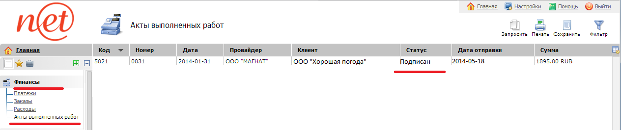2.3.4. Подписан (мы получили наш экземпляр акта уже подписанный со стороны клиента)