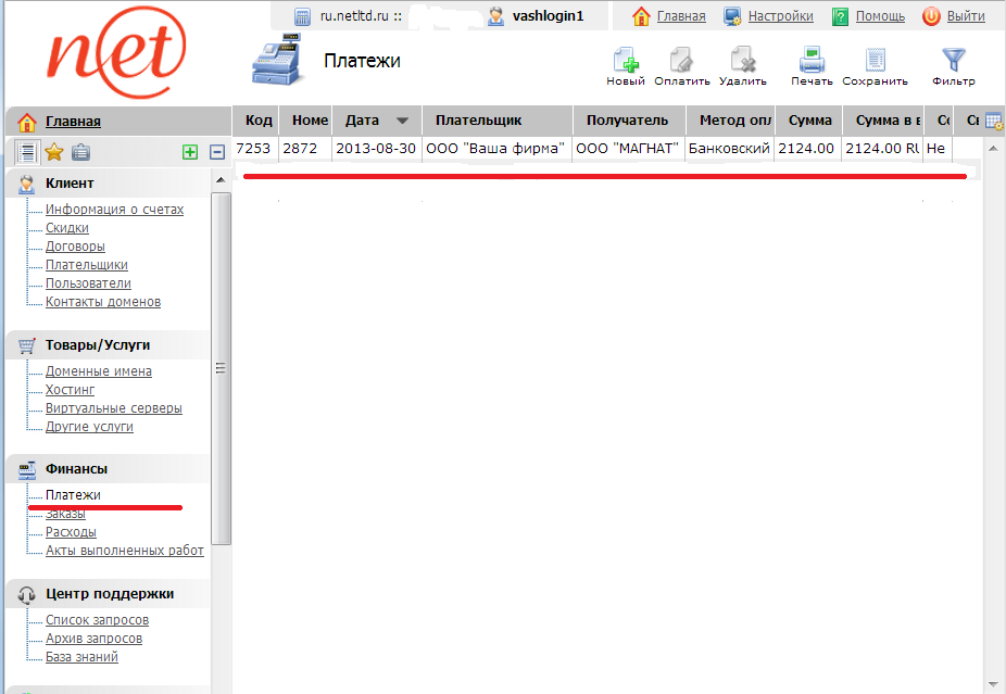 5. После того как счет будет сформирован, он будет находится в разделе Финансы подразделе Платежи