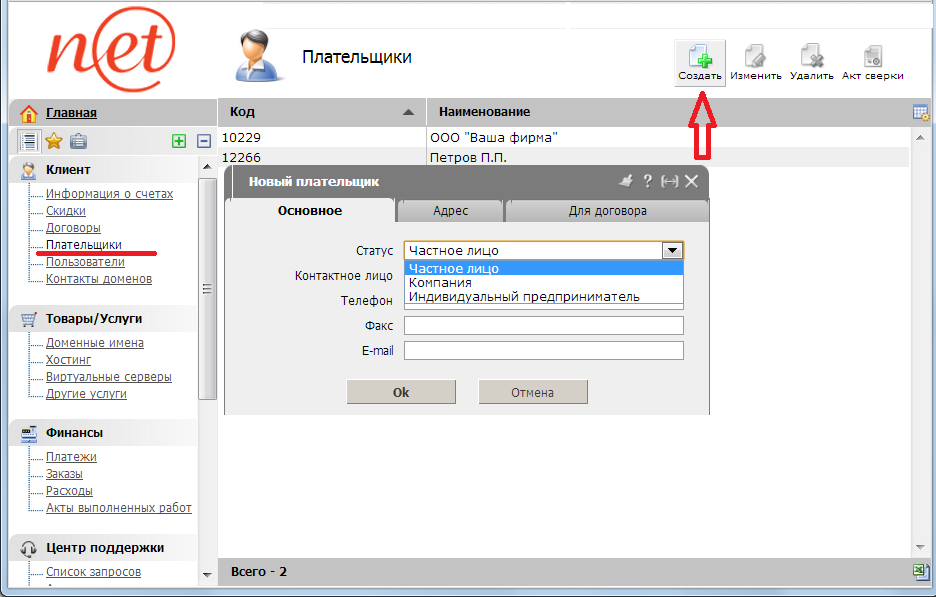 1. Зайдите в ваш личный кабинет в раздел Клиент подраздел Плательщики