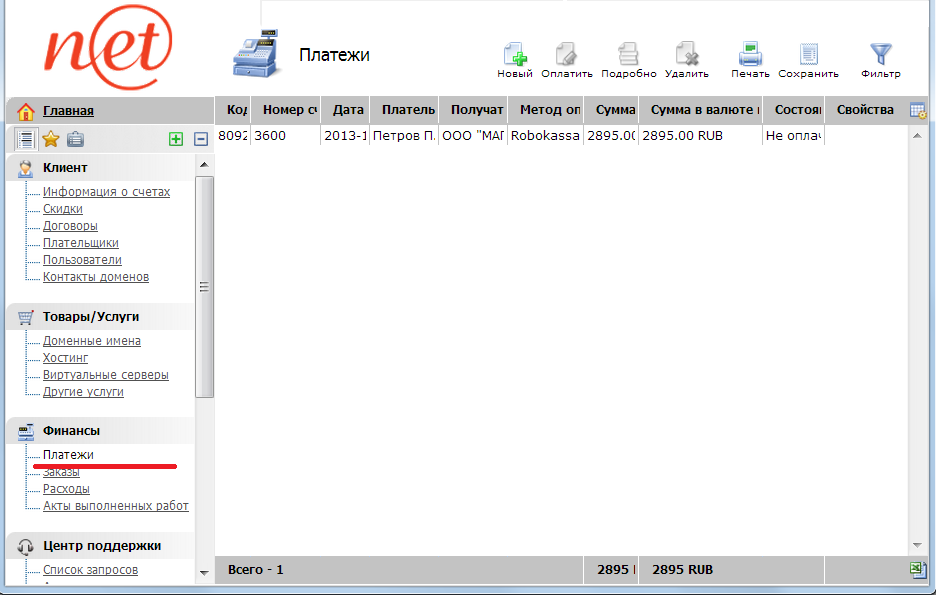 Для этого зайдите в вашем личном кабинете (BillManager) в раздел Финансы подраздел Платежи.