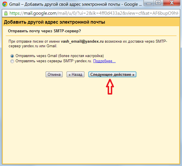 Предыдущая страница: настройка внешней почты